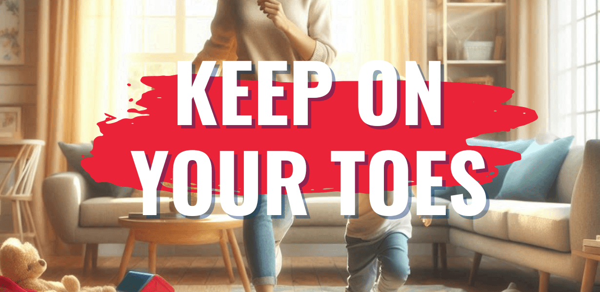 Parenting definitely keeps you on your toes. (Ser pai ou mãe com certeza te mantém em alerta.)