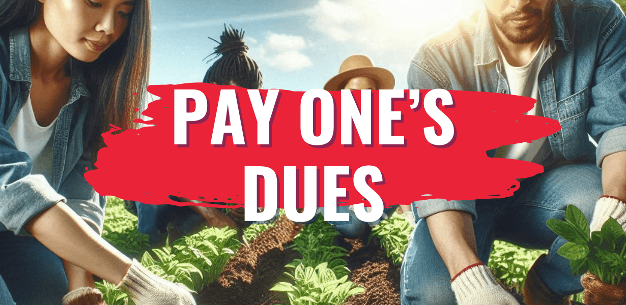 They had to pay their dues by volunteering their time before getting hired for a paid position. (Eles tiveram que pagar o preço oferecendo seu tempo como voluntários antes de serem contratados para uma posição remunerada.)