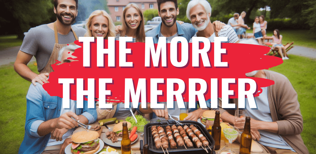 My kids love having friends over, so for them, the more the merrier. (Meus filhos adoram receber amigos em casa, então para eles, quanto mais, melhor.)