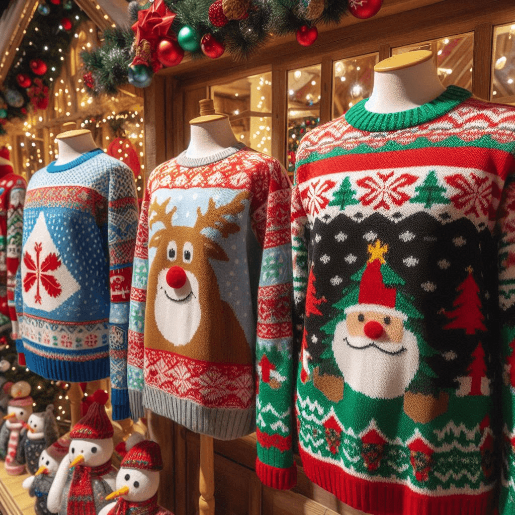 E vale tudo mesmo: luzes piscantes, renas com olhos que mexem, bonecos de neve em 3D e até suéteres que tocam música com microchips embutidos. As lojas chegam a passar meses preparando coleções inteiras desses modelos malucos, e várias marcas famosas lançam edições especiais todo ano.